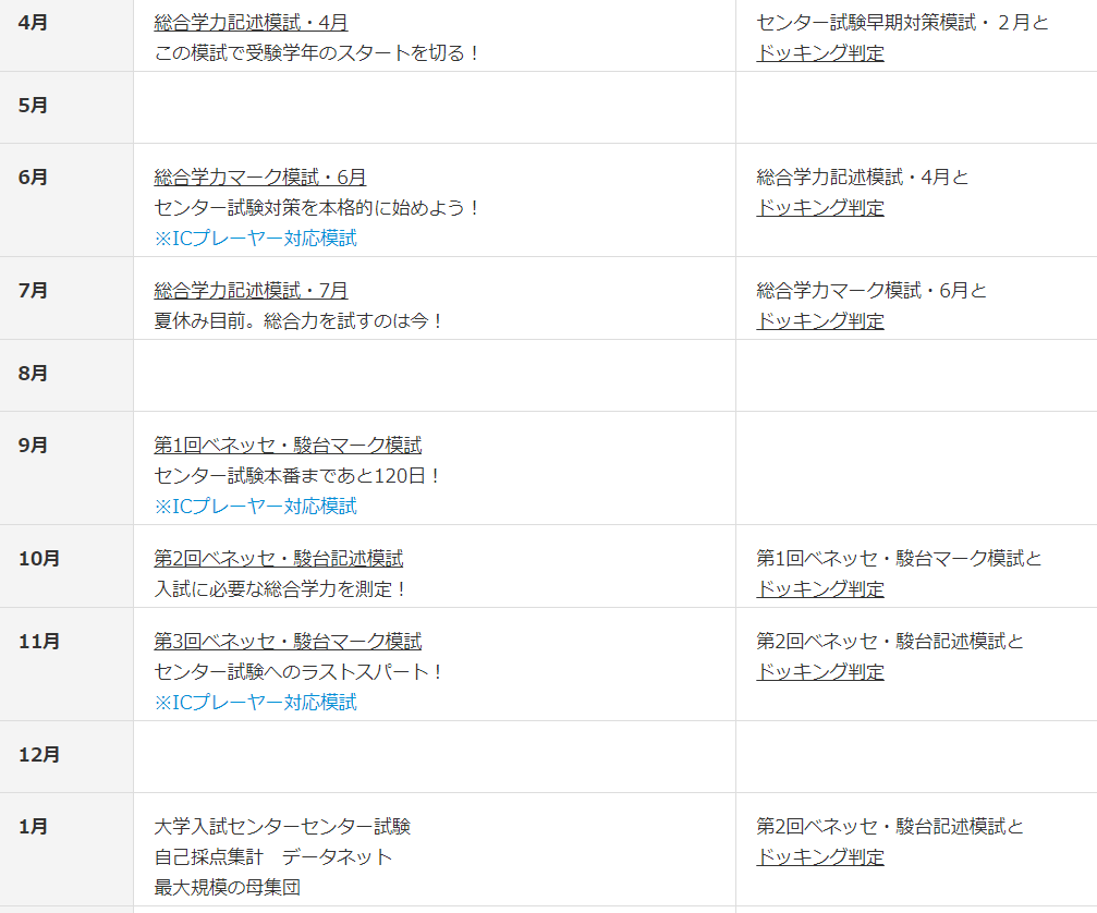 最后不同于国内模拟考集中在高三一学年,平均分布在三年间的多次進研模試有助于学生循序渐进,最终迎接日本的大学入试中心考试!