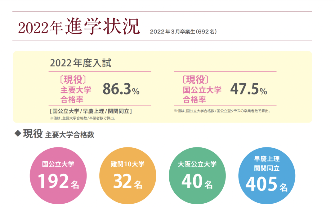 桃山学院高等学校不但拥有多姿多彩的校园生活,在升学实绩上更是有过硬的保障!桃山学院每年毕业生的知名大学合格率近100%,而且国公立及名牌私立院校合格人数能占到大多数。可见高偏差值高升学不是浪得虚名的!