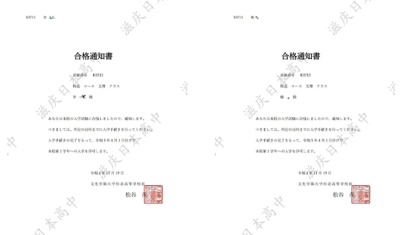 今天上午,随着一份来自日本冈山学艺馆高等学校的合格通知书,我们滋庆日本名校高中直升班2022届的升学目标圆满达成!这是我们滋庆中日班连续第七年以100%的合格率达成升学计划!