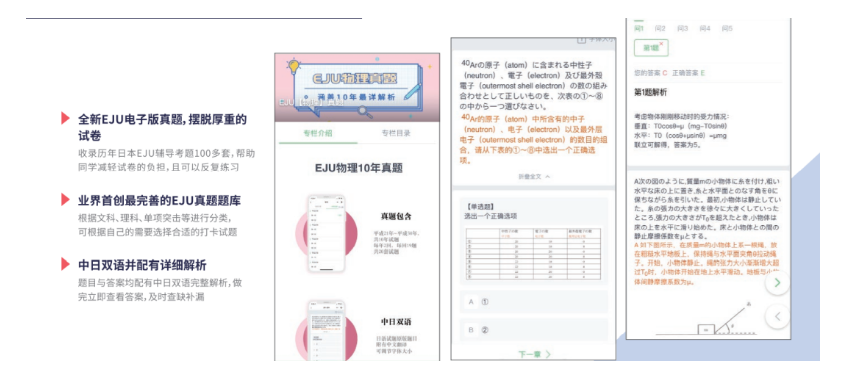涵盖日本初中、高中、EJU各个项目的辅导教材题库,可反复刷题训练