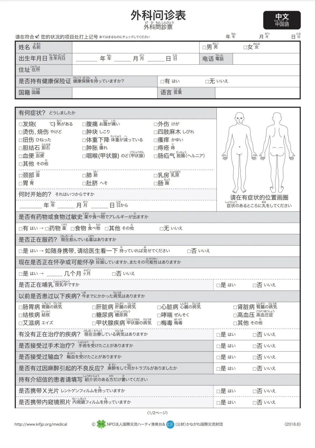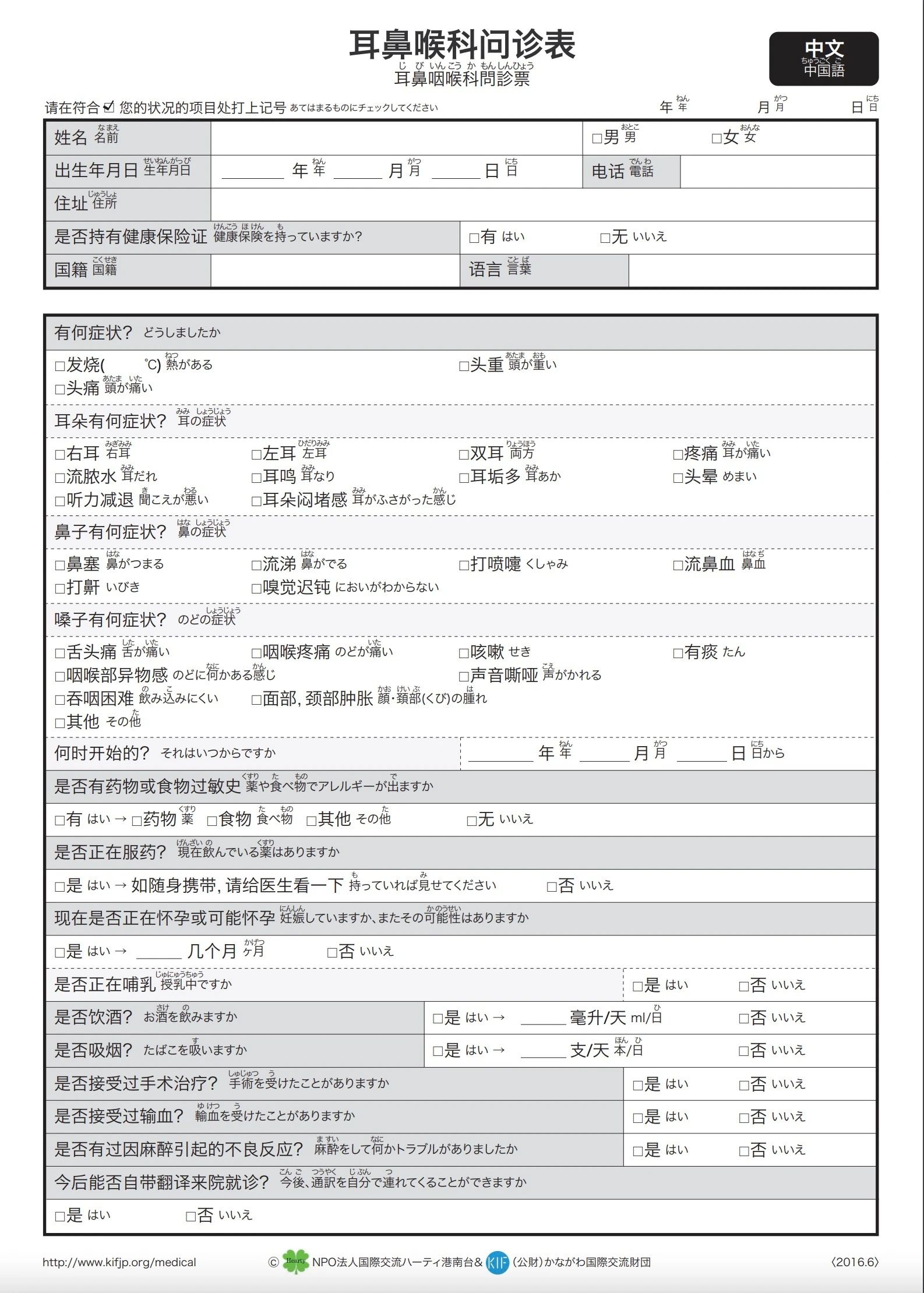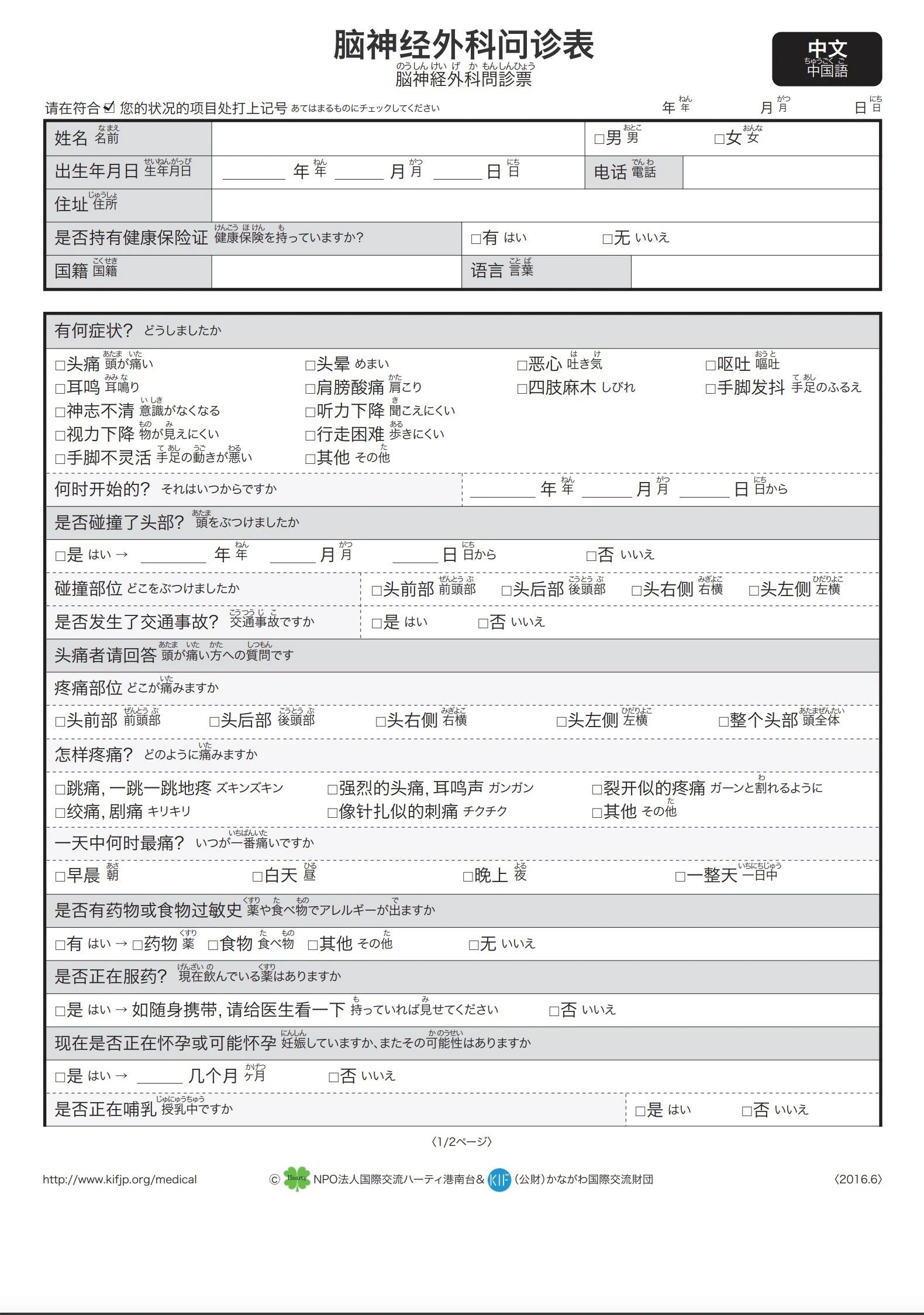 在第一次去的医院和药房,必须要填写问诊单。