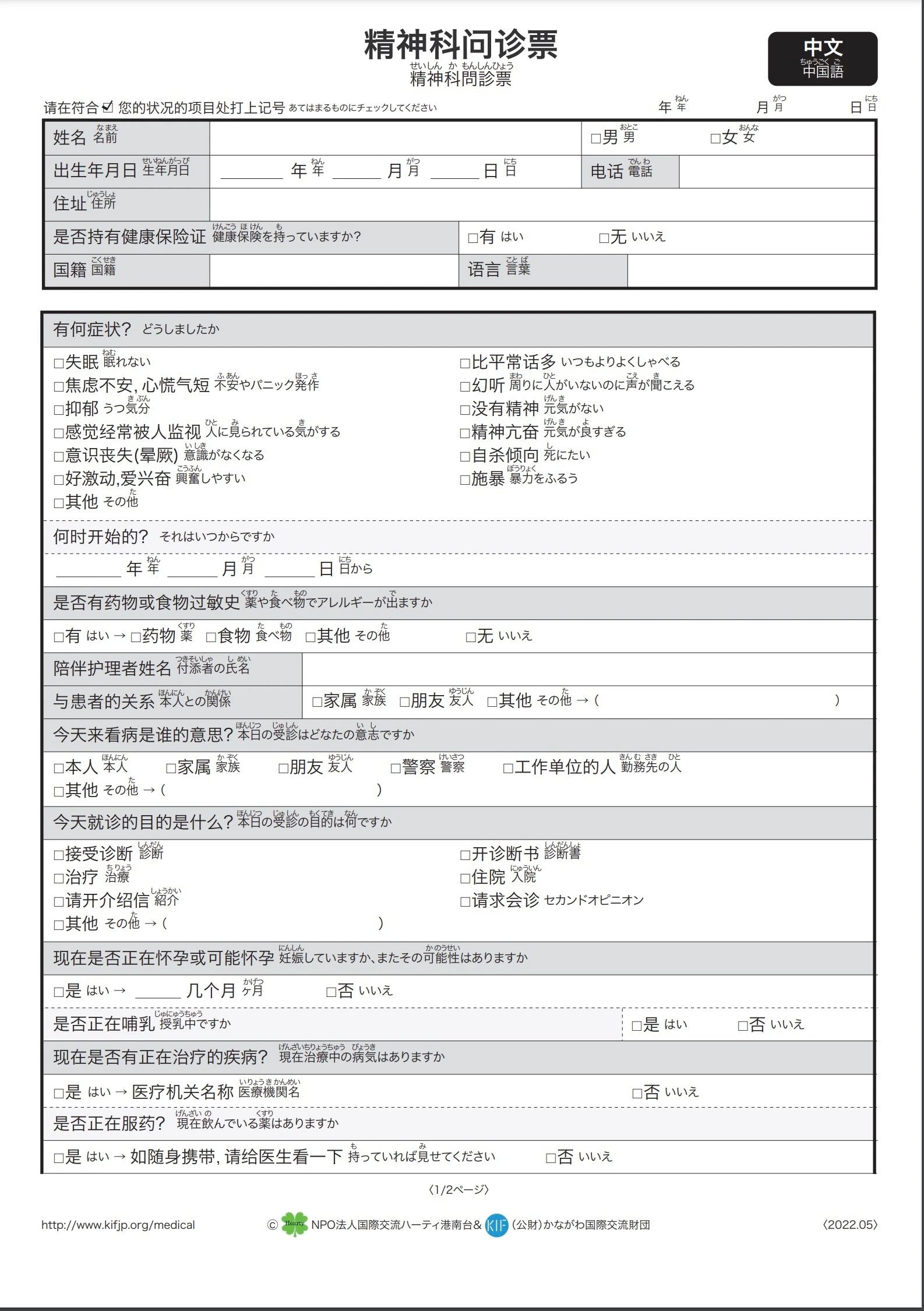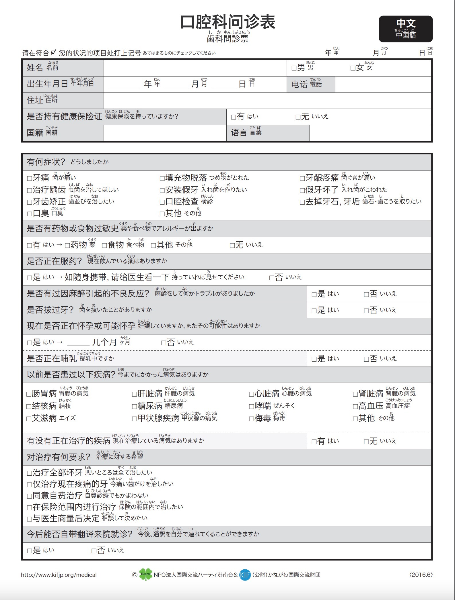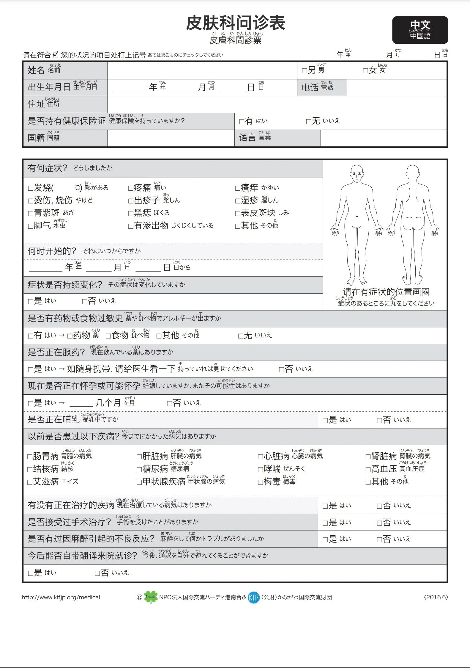 在第一次去的医院和药房,必须要填写问诊单。