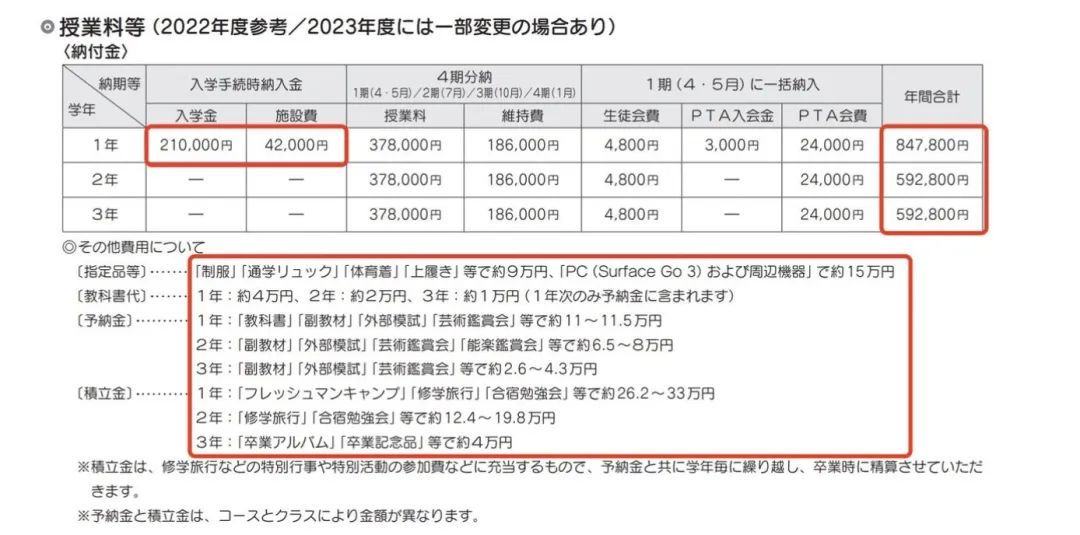 只能做参考!只能做参考!只能做参考哦!在实际就学过程中还会产生诸如修学旅行费、外国研修费、这种活动那种活动的费用~