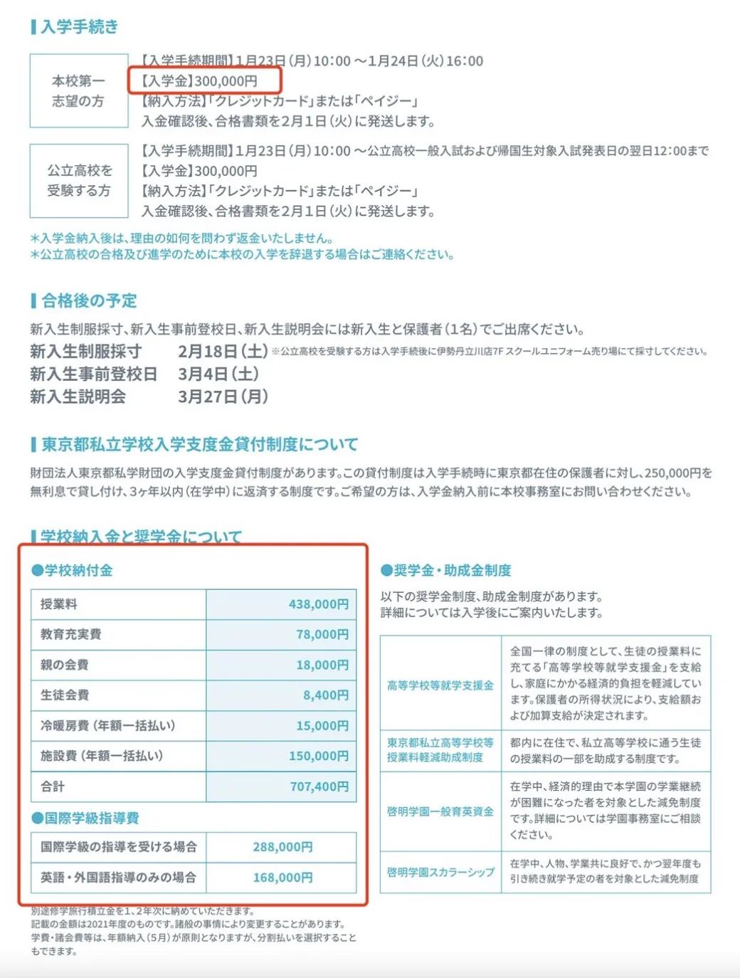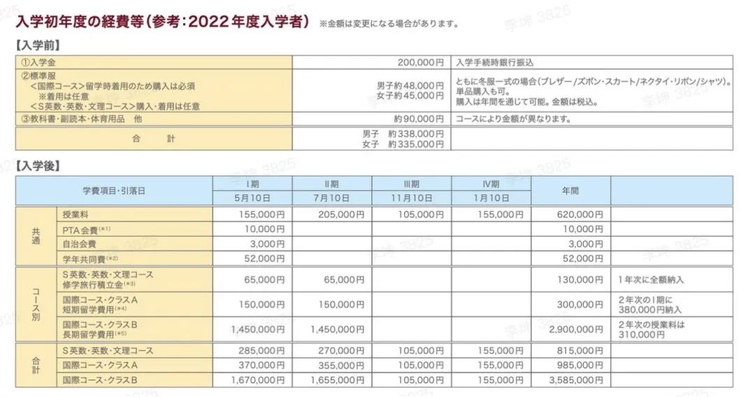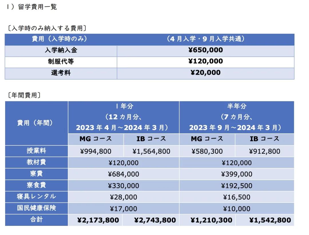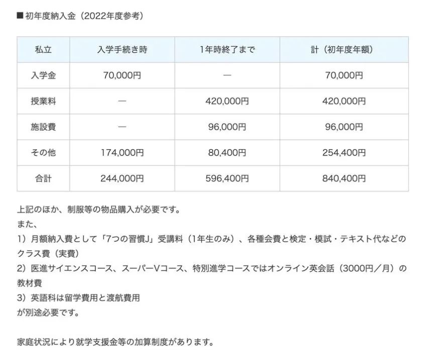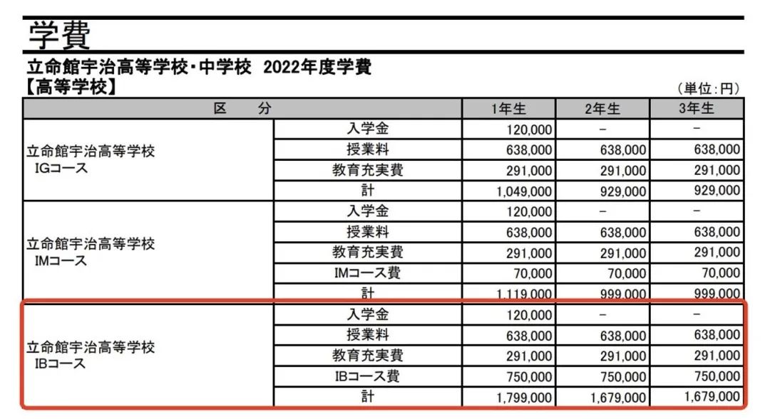 其实日本私立高中普通课程的学费都大差不差。第一年因为有入学金、设施使用费、校服费等等,所以相比较第二年、第三年要多支付一笔。学费的话,基本一年都是80w-100w日元左右。IB或者日加双学历课程的学费会稍微贵1.2~1.5倍。但是具体每个学校的学费是多少呢?我们今天就来看一看吧~