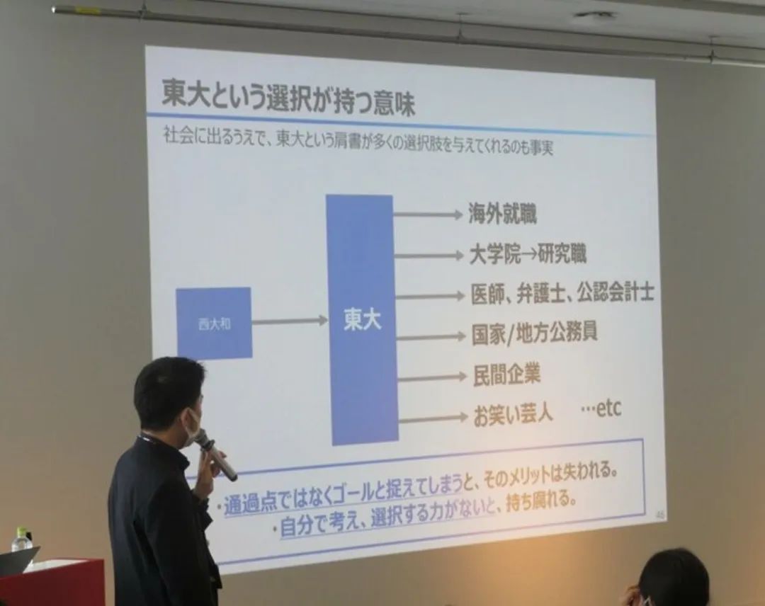 我们每天都在讨论如何能让我们学校存在于奈良变得有价值。想参加京都大学入学考试的孩子们可以很方便的去往学校, 但是,我们怎样才能让孩子们不仅仅留在近畿地区,而是在世界范围内发挥积极作用呢?因此,我们还专门制造机会,邀请当时还为数不多的升入东京大学的毕业生回来做讲座。
