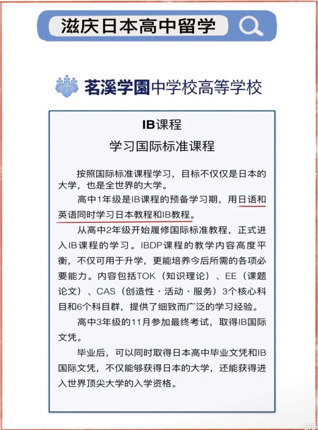 录取茗溪学园高等学校IB课程班。李同学找到我们的时候,正在上海一家欧美方向的国际学校读IB课程。因为目前IB课程在申请欧美学校这块也非常卷,且学生对于筑波大学也十分向往,经过慎重考虑,决定转换赛道,转投日本IB课程。