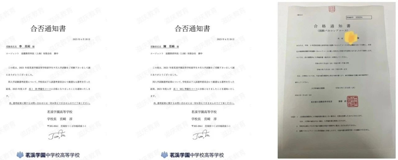 这也是滋庆2023年的第4/5/6/7号合格通知书。今年6月份,我们收获了茗溪学园高一下插班的两封合格通知书,紧接着在7月我们收获了来自东京都立国际高等学校的一封合格通知书。