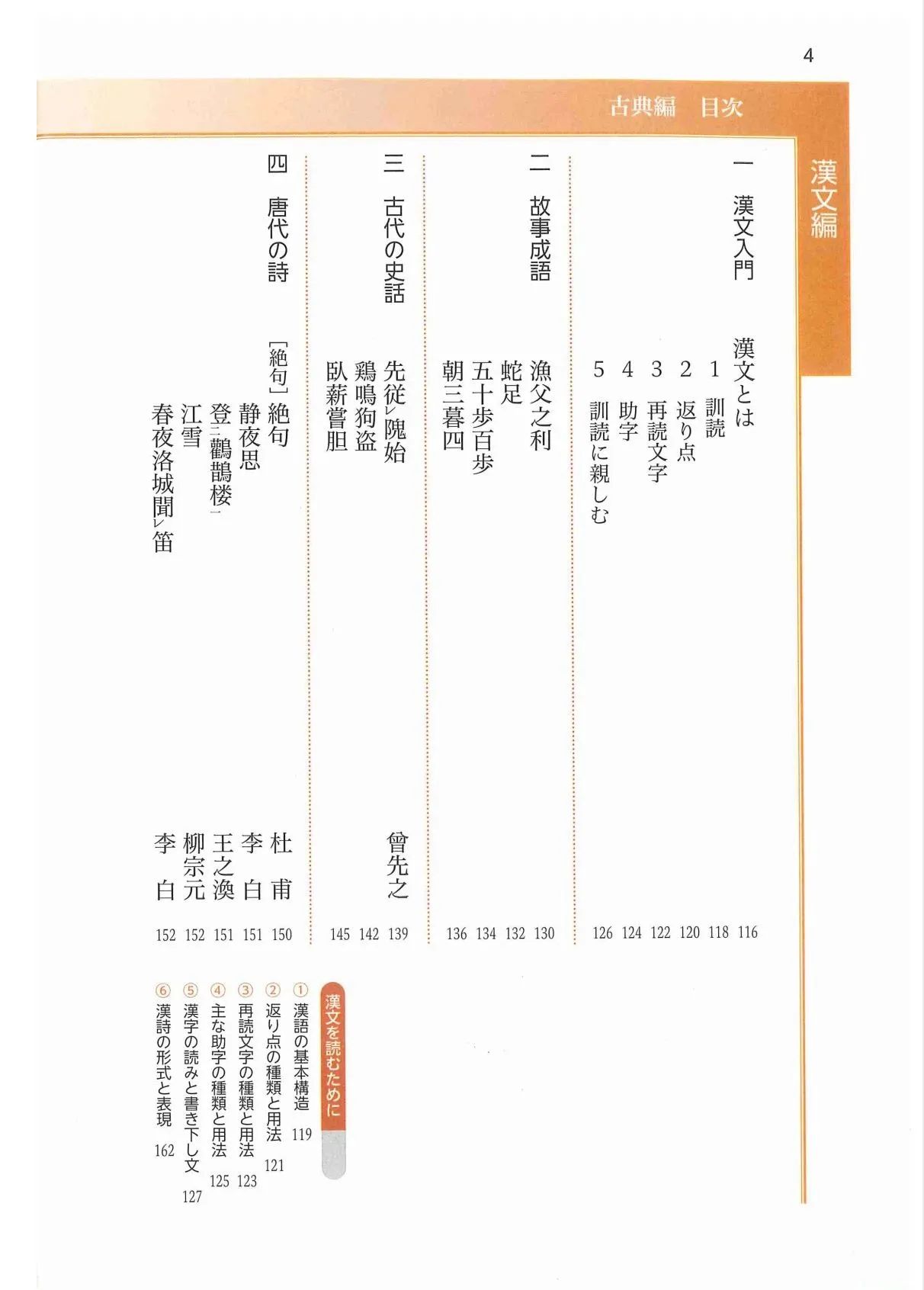 看完了目录,下面,让我们一起来瞅瞅日本高中的汉文课本吧!我截取了一部分大家在小学、初中时候就会接触到的文章与诗句。大家再看一看这些诗句是不是都特别熟悉呢?!