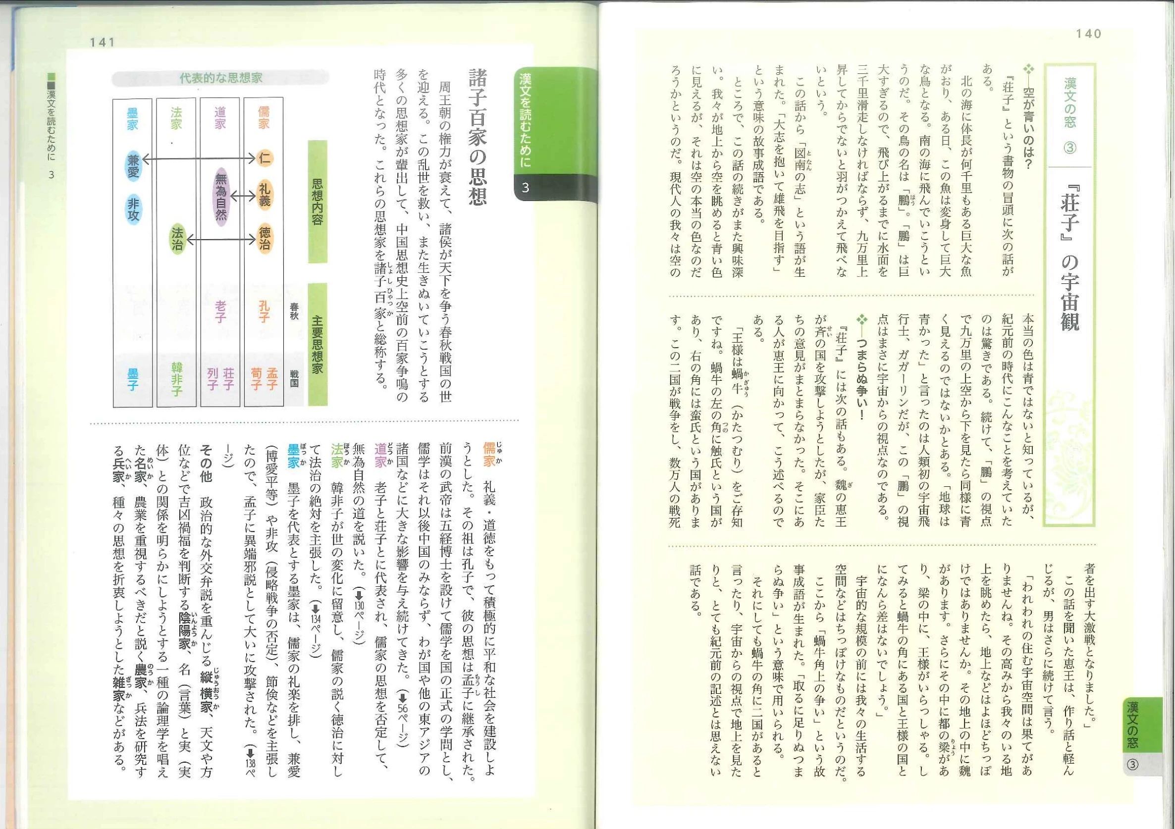 汉文,则是我们中国传统的古典文学。一般会和日本学生介绍一些四字成语、唐朝的诗歌、长古文、还有孔孟思想学说等等。在汉文课上,可以说是中国学生的天下了。毕竟在国内经历过3年的古文教育,日本高中教材难度不算太大。不过读懂归读懂,考试会不会做那是另外一回事,毕竟考试是要用日语来解释中国诗歌,难度系数不小。