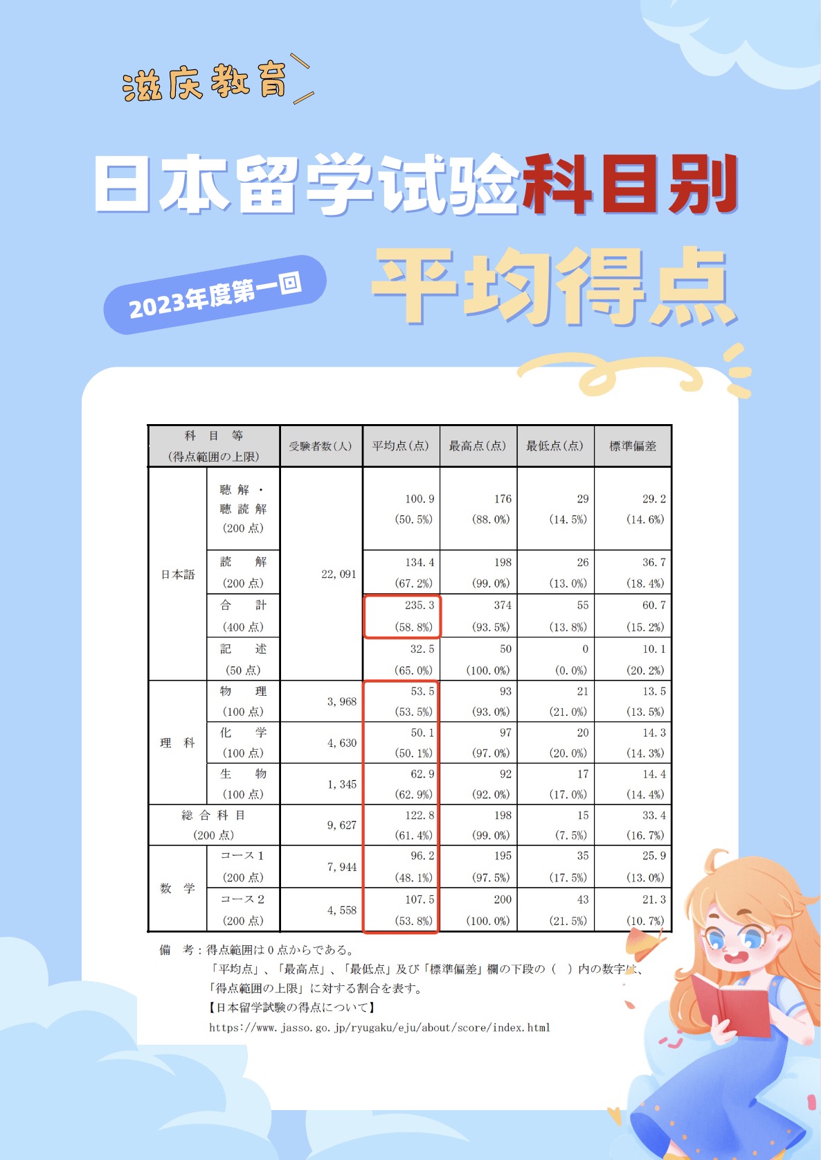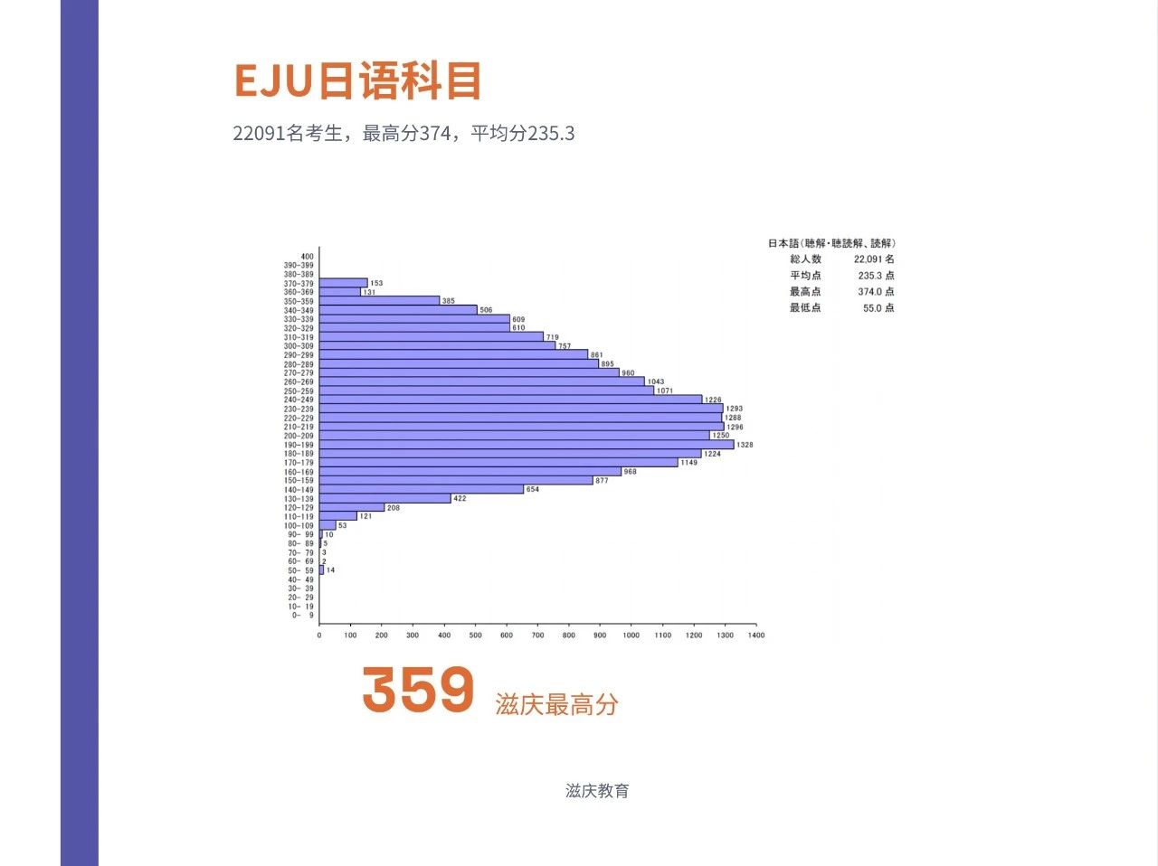 下面我们再来看一下JASSO官网给我们展示的EJU各科平均分的得点情况以及我们滋庆考生的得点情况。知己知彼,百战百胜~