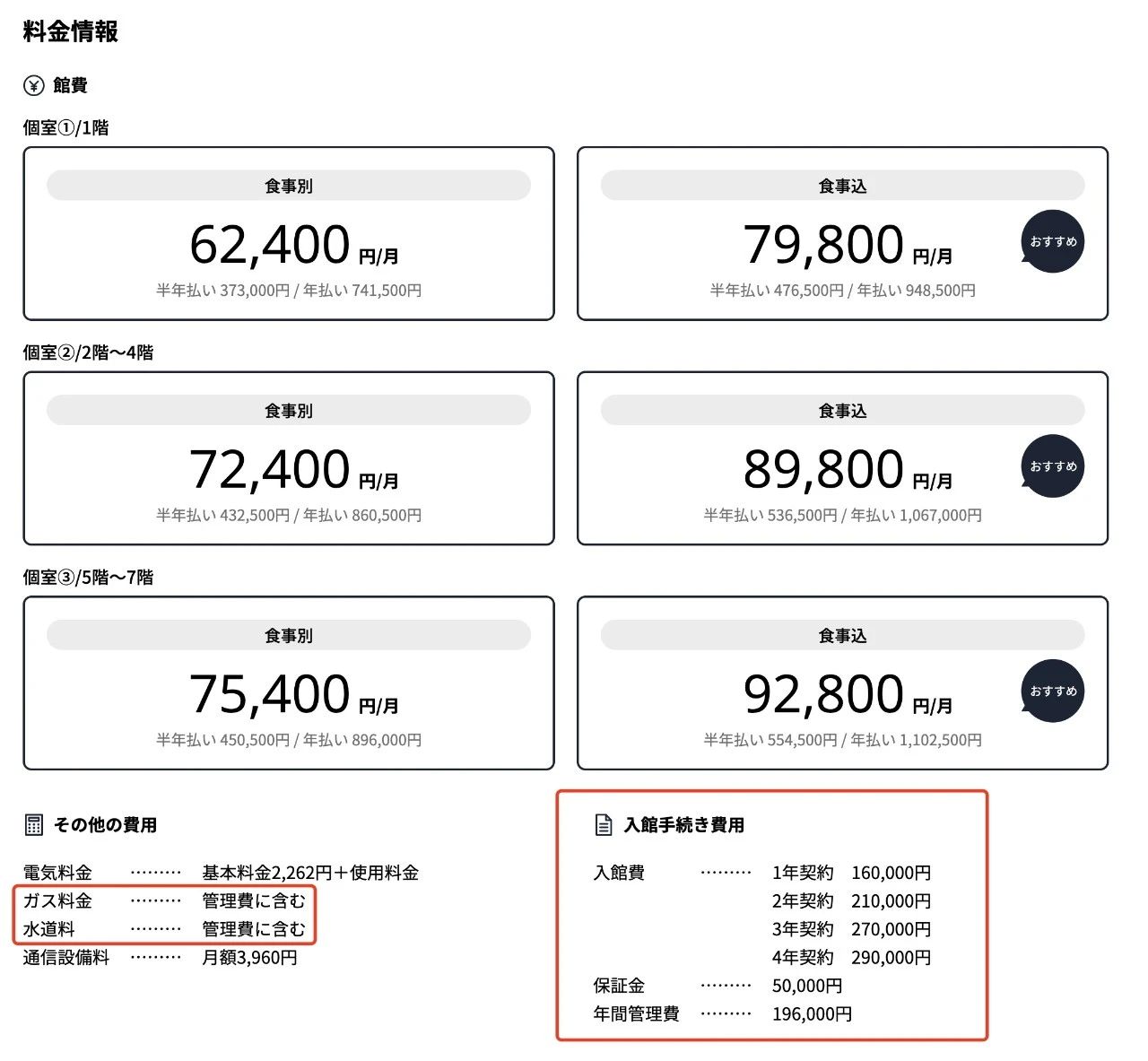 这栋学生会馆一共七层,楼层不同月租金也不同,是否选择带食宿,价格也不同。最便宜的不带早晚餐的月租金是6.2w日元,带早晚餐的则需要7.9w日元。这个学生公寓是包煤气费和水费的。到那时电费和wifi费用则是要自己付。